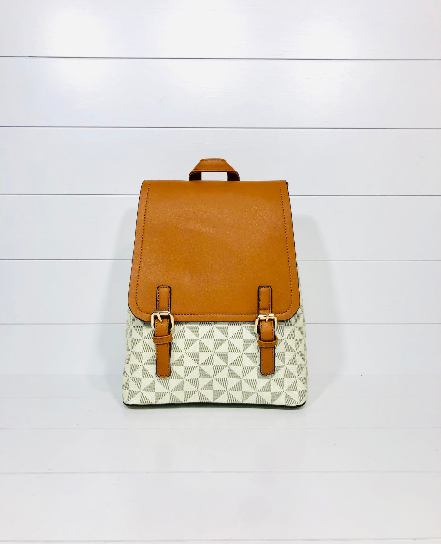 Geometric Beige Faux Leather Backpack