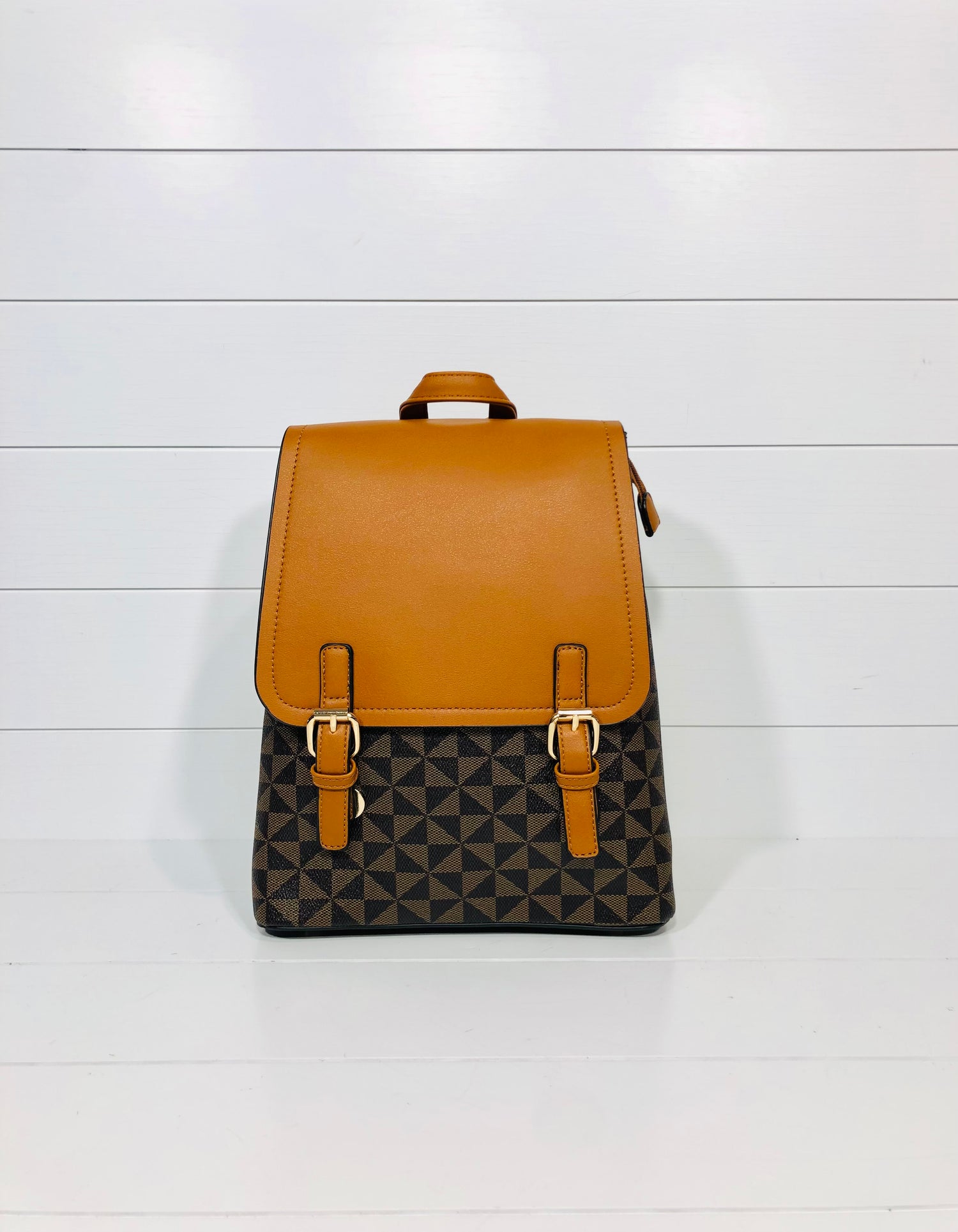 Geometric Brown Faux Leather Backpack